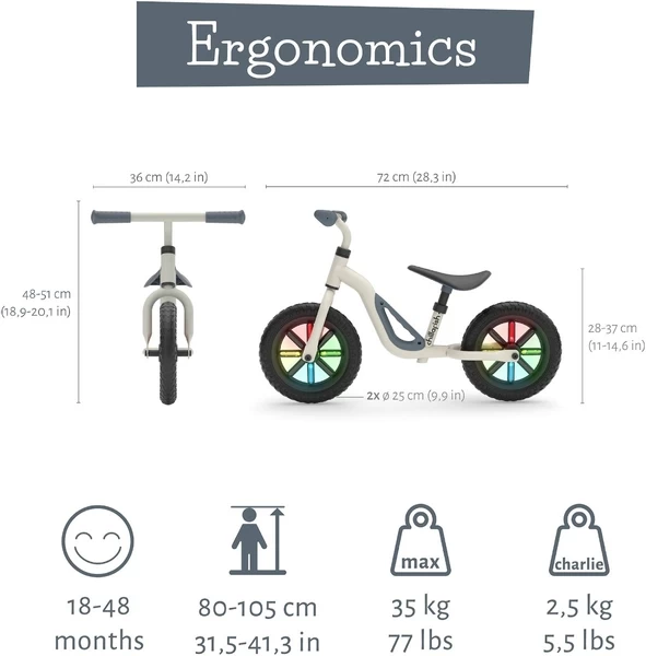 Zijn de kids toe aan verkenning buiten de voor- of achterdeur? Laat ze dan op pad gaan met de Chillafish Charlie loopfiets. Deze loopfiets heeft grote wielen met een diameter van 25 cm, een verstelbaar zadel én stuur en een handig handvat in het frame. Deze Charlie Glow loopfiets ziet er nét even wat stijlvoller uit door de lichtjes in de wielen. Met de Charlie loopfiets haal je een stevige en stabiele variant in huis!