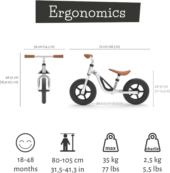 De Chilafish Charlie loopfiets groeit met de kids mee. Het zadel is namelijk verstelbaar in verschillende hoogtes vanaf 28 tot 37 cm. Daarnaast groeit ook het stuur mee. Deze is verstelbaar tussen de 48 en 51 cm. Zo zit jouw kindje altijd comfortabel op de loopfiets.