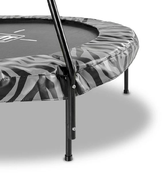 De EXIT Tiggy junior trampoline 140 cm is een mini trampoline voor kinderen van drie tot vijf jaar. Deze compacte ronde trampoline is voorzien van een beugel voor extra houvast tijdens het springen en heeft een lage opstap, zodat peuters en kleuters makkelijk op de trampoline kunnen klimmen. Uniek aan de trampoline is de zwartgrijze beschermrand met stoere tijgerprint. Op de Tiggy junior trampoline van EXIT Toys beleven de allerkleinsten groots springplezier.