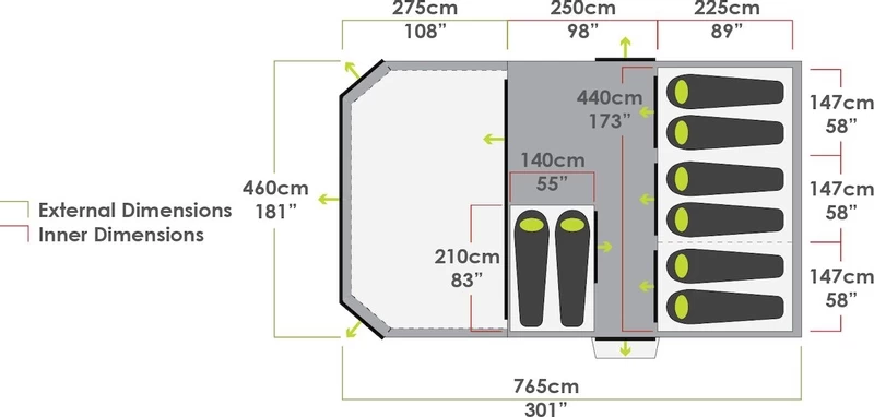 Deze ruime familietent biedt 6 slaapplekken en 1 grote slaapcabine waar je maximaal 3 slaapcabines van maakt door uitritsbare scheidingswanden. Het is dus helemaal aan jezelf of je gezellig met zijn allen bij elkaar ligt of toch kiest voor wat meer privacy. Een extra slaapkamer krijg je bij de tent erbij en past in het ruime leefgedeelte wanneer extra slaapruimte nodig is. Ook biedt de tent een grote overdekte buitenruimte door de voortent. Wil je lekker met zijn allen buiten in de schaduw ontbijten? Dat kan gerust!